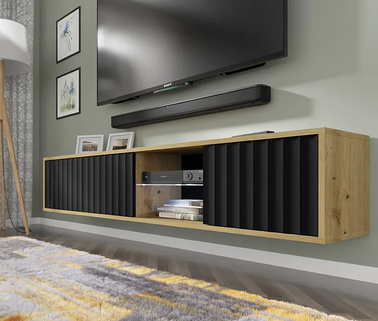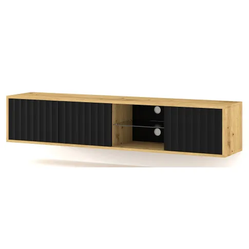 Frezowana ścienna szafka rtv dąb artisan + czarny - Solveno