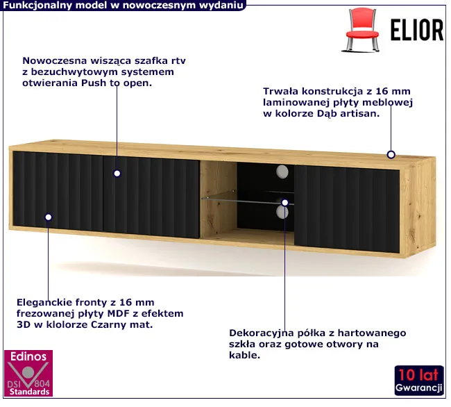 Elegancka i funkcjonalna szafka rtv Solveno marki Edinos Premium to esencja nowoczesnego stylu. Jej przemyślany design sprawia, że każdy detal salonu zyskuje na znaczeniu, a codzienne korzystanie staje się czystą przyjemnością. Dzięki innowacyjnym rozwiązaniom szafka rtv Solveno otwiera przed Tobą nowe możliwości aranżacji wnętrza. Nie czekaj, dodaj szczyptę nowoczesności do swojego salonu już dziś! Kup szafkę rtv Solveno marki Edinos Premium za jedyne 848 zł.