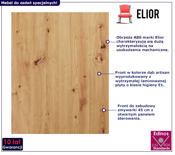• Front w kolorze dąb artisan, wyprodukowany z wytrzymałej laminowanej płyty o klasie higieny E1.