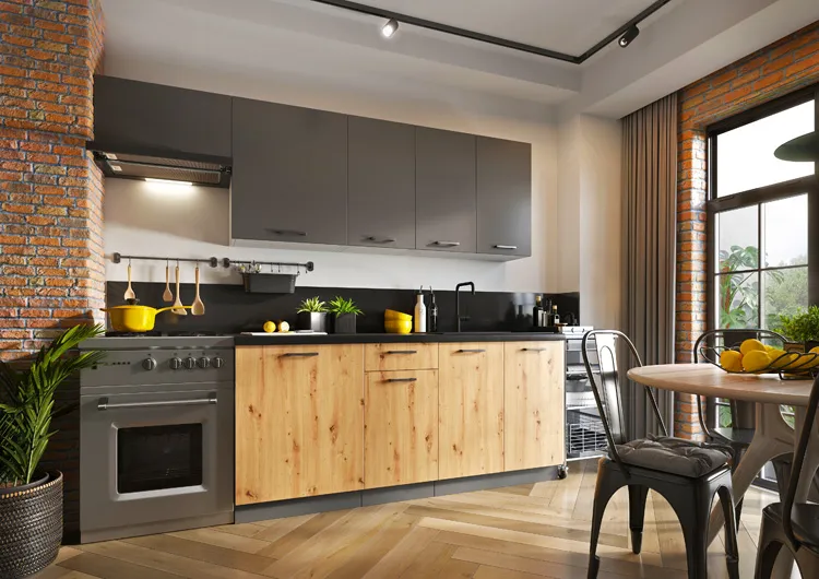 Kolekcja mebli kuchennych Rimer marki Edinos Premium to blisko 30 dostępnych modułów, wśród których znajdują się szafki stojące pod zabudowę sprzętu AGD, szafki stojące z funkcjonalnym koszem cargo, słupki kuchenne oraz szafki wiszące z szybą. Charakterystyczną cechą naszych mebli jest niebanalne zestawienie kolorów. Szafki dolne są w kolorze dąb artisan, który cieszy się coraz większą popularnością w kuchniach urządzonych w stylu skandynawskim, klasycznym a nawet nowoczesnym. Fronty szafek górnych utrzymano z kolei w kolorze szarego grafitu. Całość uzupełniają bardzo wygodne metalowe uchwyty w czarnym kolorze. Korpus w kolorze szarym, wyprodukowany z wytrzymałej laminowanej płyty o klasie higieny E1, idealnie współgra z frontami w kolorze grafitowym oraz dąb artisan. Na szczególną uwagę zasługuje fakt, iż fronty szafki, wyprodukowane są z mocnej foliowanej płyty MDF o grubości 16 mm. Prawdziwym hitem w funkcjonalności mebla są regulowane nóżki, które w prosty sposób pozwolą Ci ustawić szafkę w zależności od potrzeb Twojego wnętrza. Kolekcja mebli kuchennych Rimer marki Edinos Premium, to niezbędnik przy projektowaniu gustownej kuchni, którą pokocha cała rodzina!