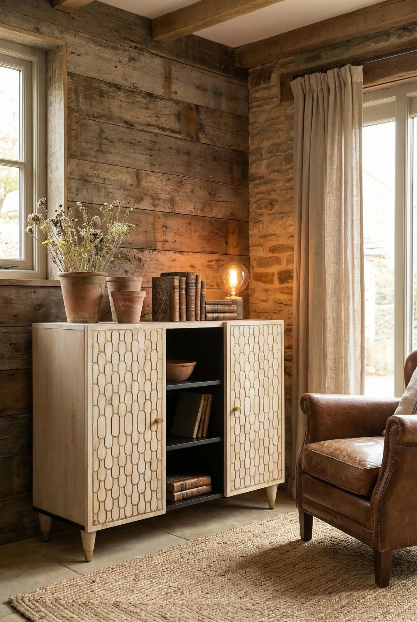 Aranżacja salonu z komodą w rustykalnym stylu Nolen 7X