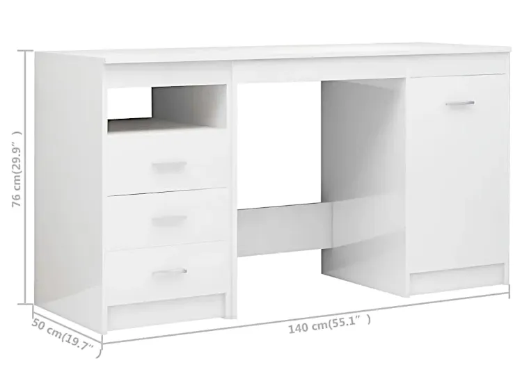 Funkcjonalne biurko białe z połyskiem - M005