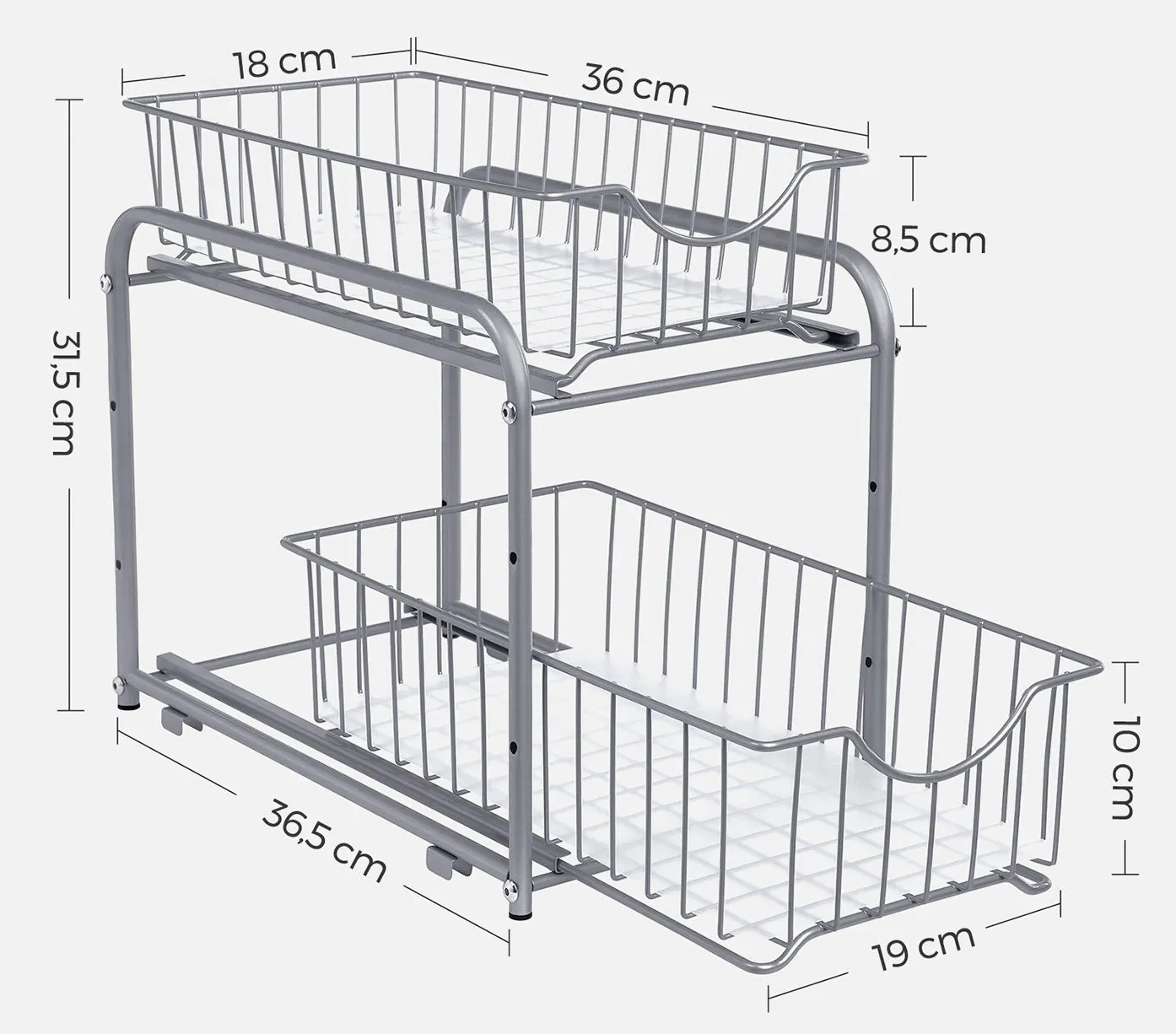 • Regulowana wysokość szuflad – idealne dopasowanie do niskich i wąskich szafek.