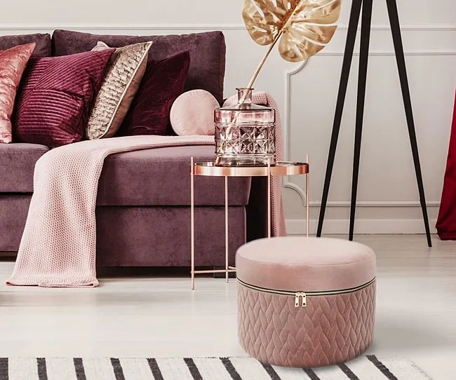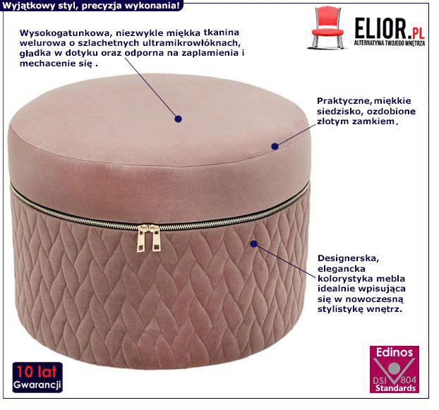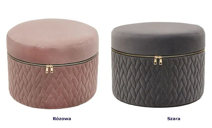 - Modny kolor: różowy, złoty. Kliknij w link i sprawdź także inne pufy z pojemnikiem w sklepie Edinos.pl. Stwórz swój praktyczny zestaw mebli.