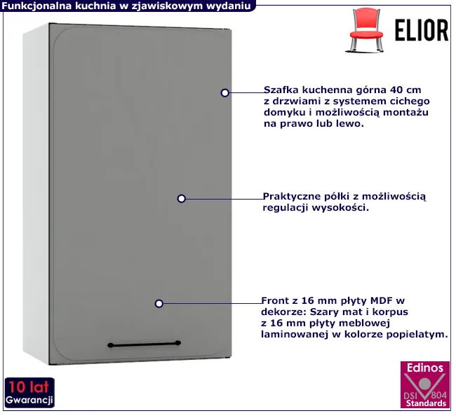 Górna szafka kuchenna 40 cm szary mat - Frev 26X