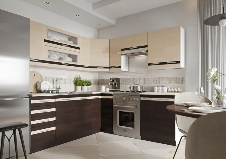 Szafka narożna wisząca Abder 10X jest częścią kolekcji Lungo marki Elior przeznaczonej do aranżacji kuchni i aneksów kuchennych. Spójrz jak rewelacyjnie prezentuje się wybrany zestaw z serii Lungo w przykładowej aranżacji.
