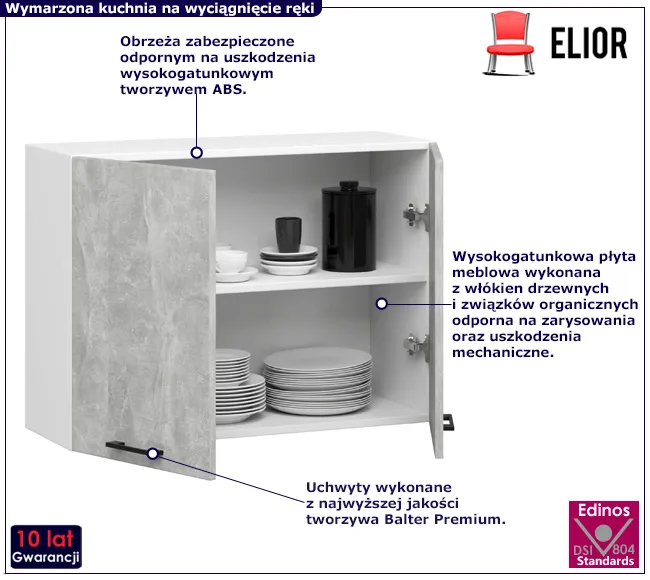 • Kolor: korpus: biały, fronty: beton. W naszej ofercie posiadamy także inne szafki kuchenne. Kliknij i stwórz swój wyjątkowy zestaw mebli.
