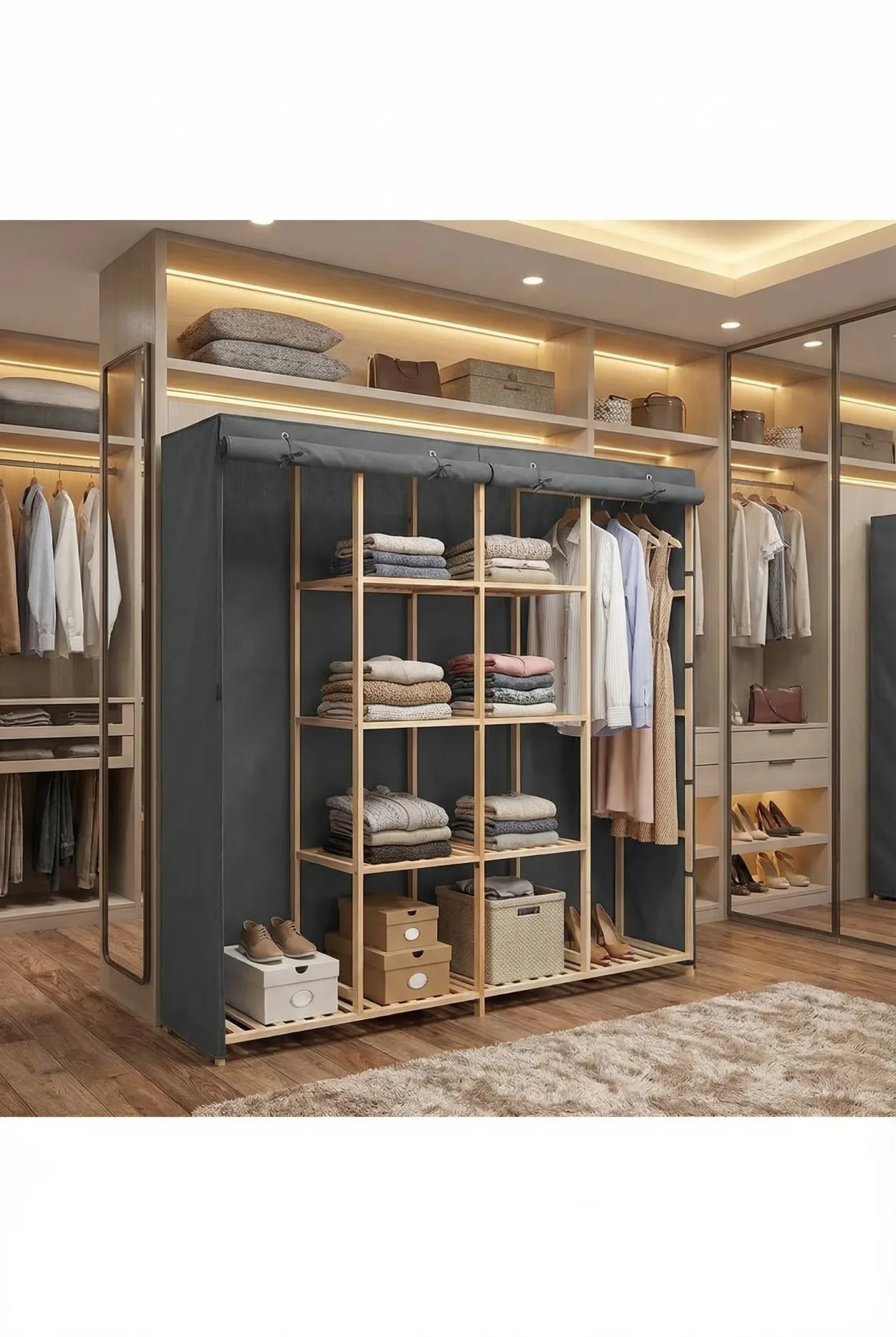 Aranżacja garderoby z szafą tekstylną z półkami i drążkiem Erivox 6X