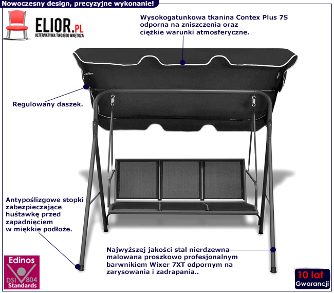 - Kolor: grafitowy. Kliknij w link i sprawdź także inne huśtawki ogrodowe w sklepie Edinos.pl.