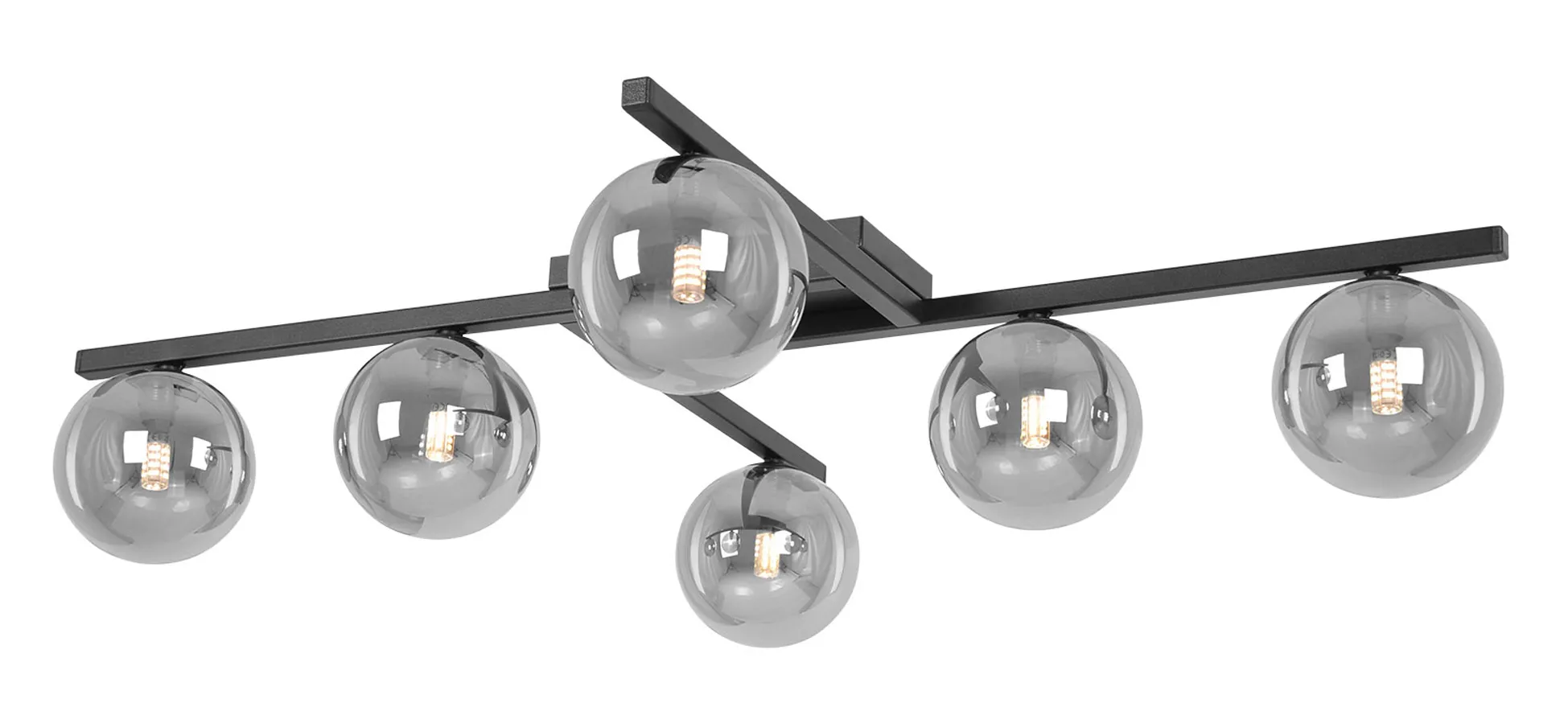 Grafitowa lampa sześciopunktowa z kloszami ze szkła - J067-Sarda