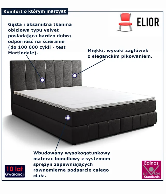 Dotyczy: Zielone tapicerowane welurem łóżko kontynentalne 3 rozmiary - Ardenis