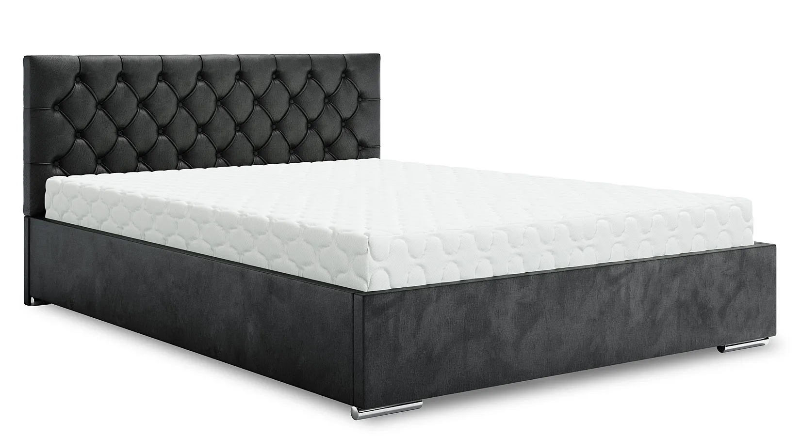 Dotyczy: Czarne tapicerowane welurem łózko z pikowaniem 5 rozmiarów - Cavenio