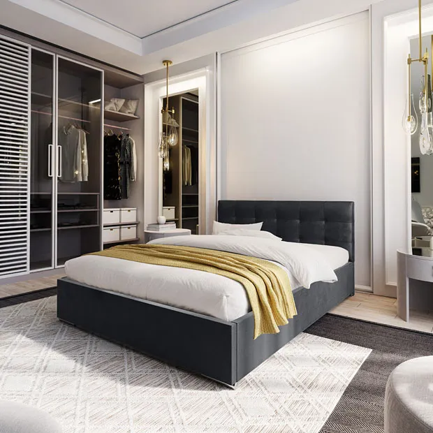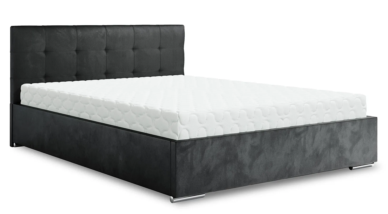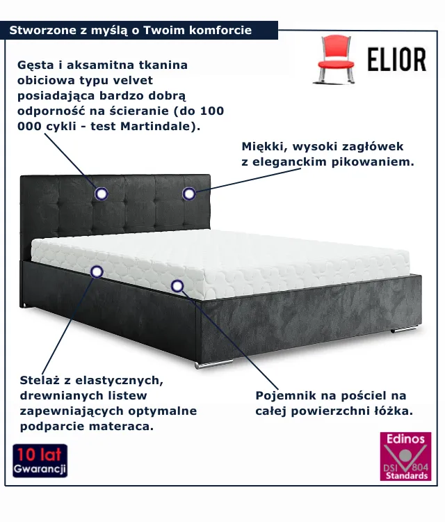 Dotyczy: Czarne welurowe łóżko pikowane z pojemnikiem 5 rozmiarów - Solviero
