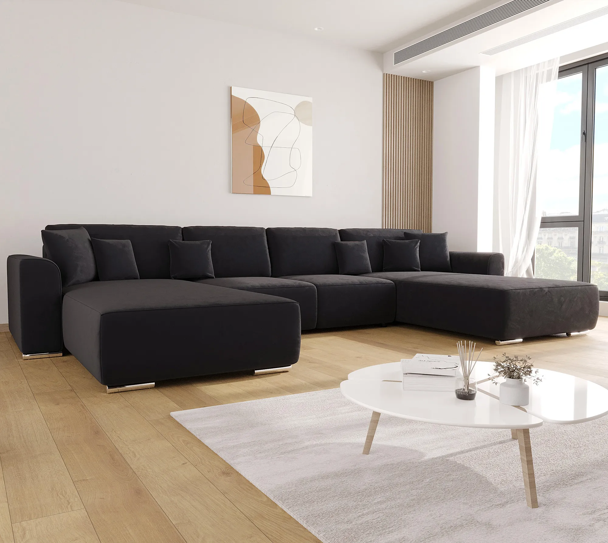 Aranżacja wnętrza z ciemnoszarym narożnikiem Cassero