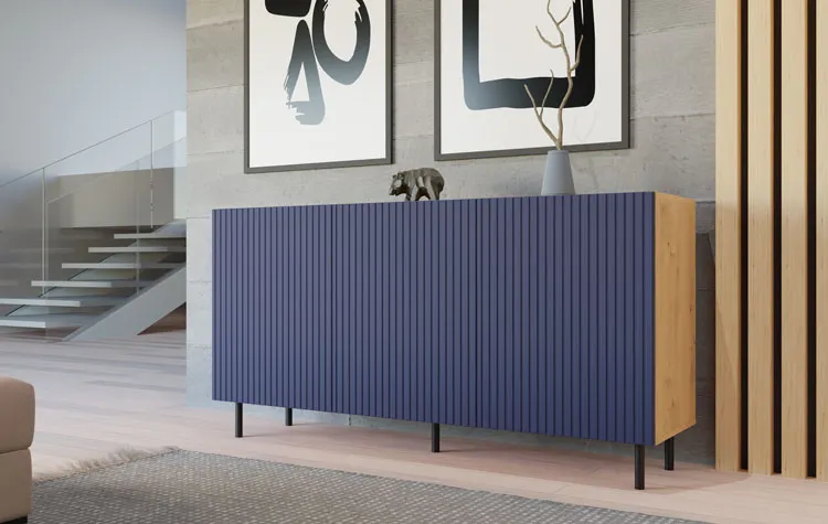 Dotyczy: Czarna duża trzydrzwiowa lamelowa komoda na nóżkach - Frea 5X
