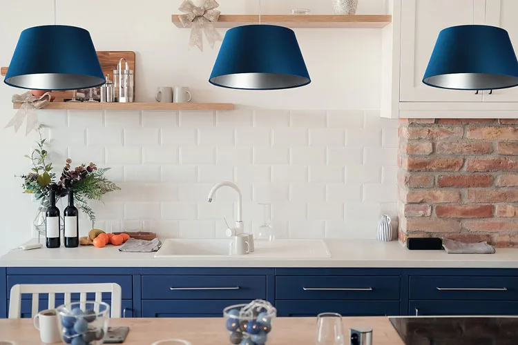 Kolor: abażur - granatowy, wnętrze abażura - srebrny, przewód - bezbarwny, podsufitka - czarny