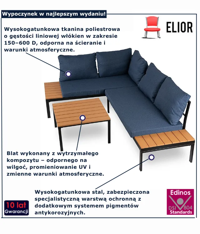 Zestaw ogrodowy Velmoro marki Edinos Premium to nie tylko meble – to funkcjonalna przestrzeń stworzona do wypoczynku. Uczyń swój ogród przedłużeniem domowego salonu i ciesz się jego wygodą każdego dnia. Zamó go już teraz w cenie 2398 zł.