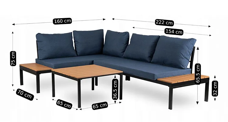 Kolor granatowy wygląda elegancko i pasuje do różnych aranżacji ogrodowych. Mebel jest solidnie wykonany, a miękkie poduchy zapewniają komfort podczas relaksu na świeżym powietrzu. Montaż był prosty, a całość prezentuje się naprawdę stylowo. Polecam każdemu, kto chce odświeżyć swoją przestrzeń ogrodową!