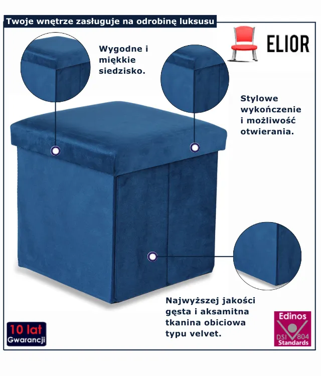 Dotyczy: Ciemnoszara kwadratowa welurowa pufa ze schowkiem - Teni 3X