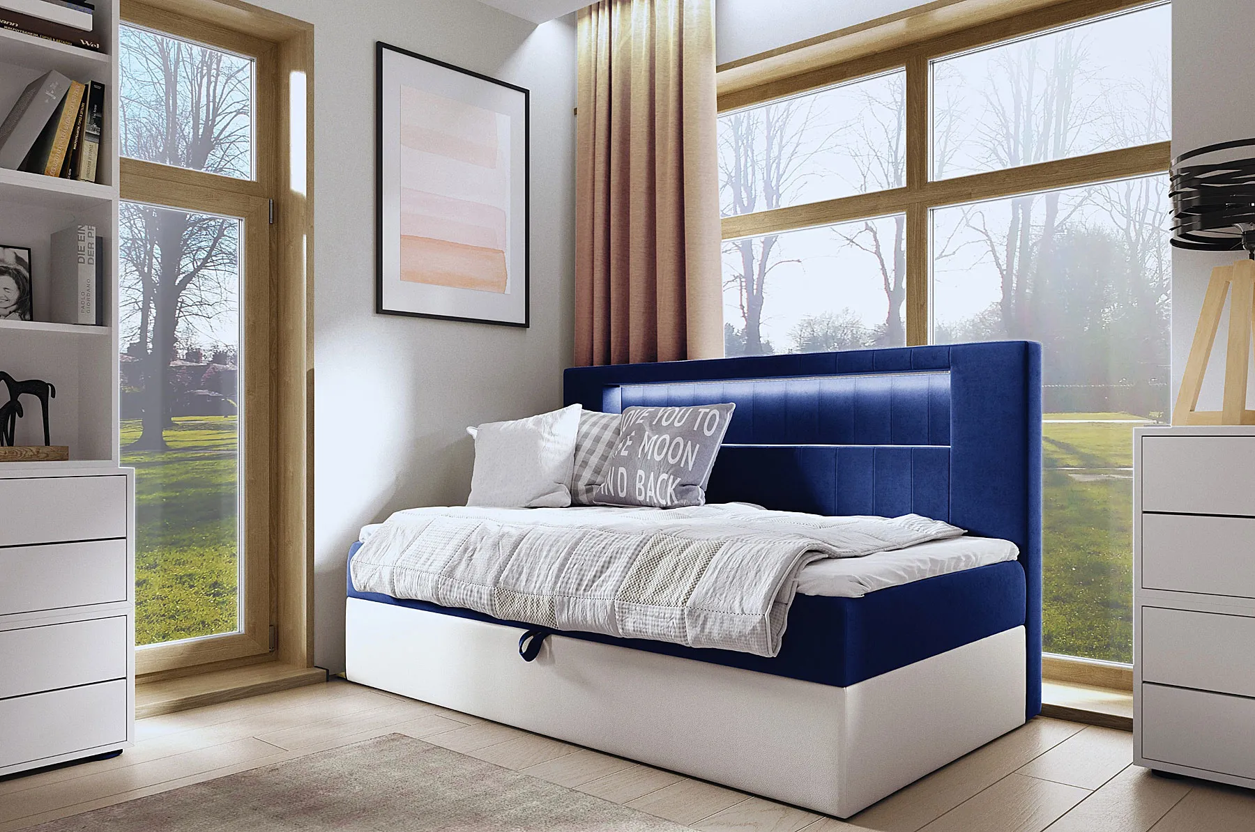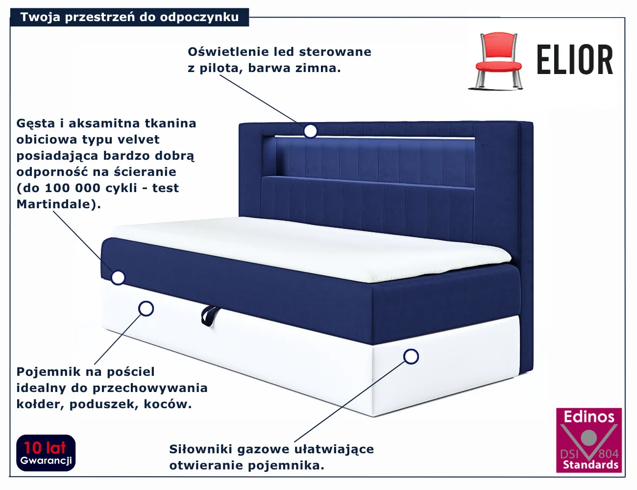 Dotyczy: Jasnoszare łóżko kontynentalne z pojemnikiem 3 rozmiary - Lorvani