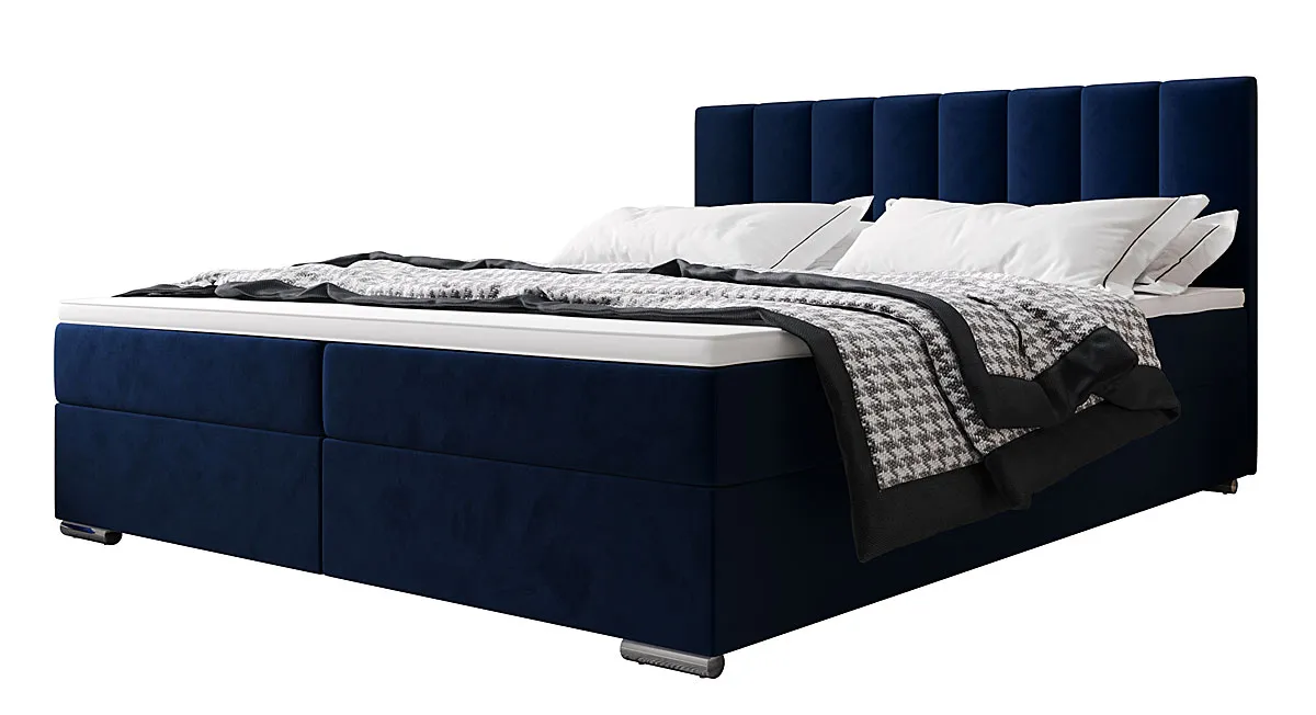 Granatowe łóżko kontynentalne z pojemnikiem 3 rozmiary - Zavire