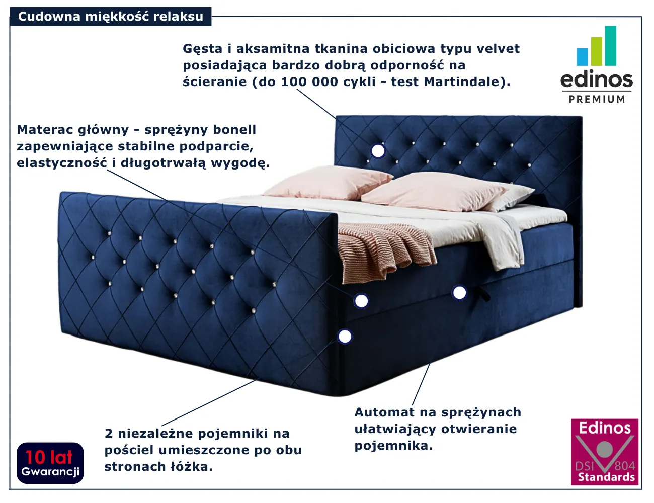 Dotyczy: Kremowe łóżko kontynentalne z pojemnikiem 5 rozmiarów - Celivera