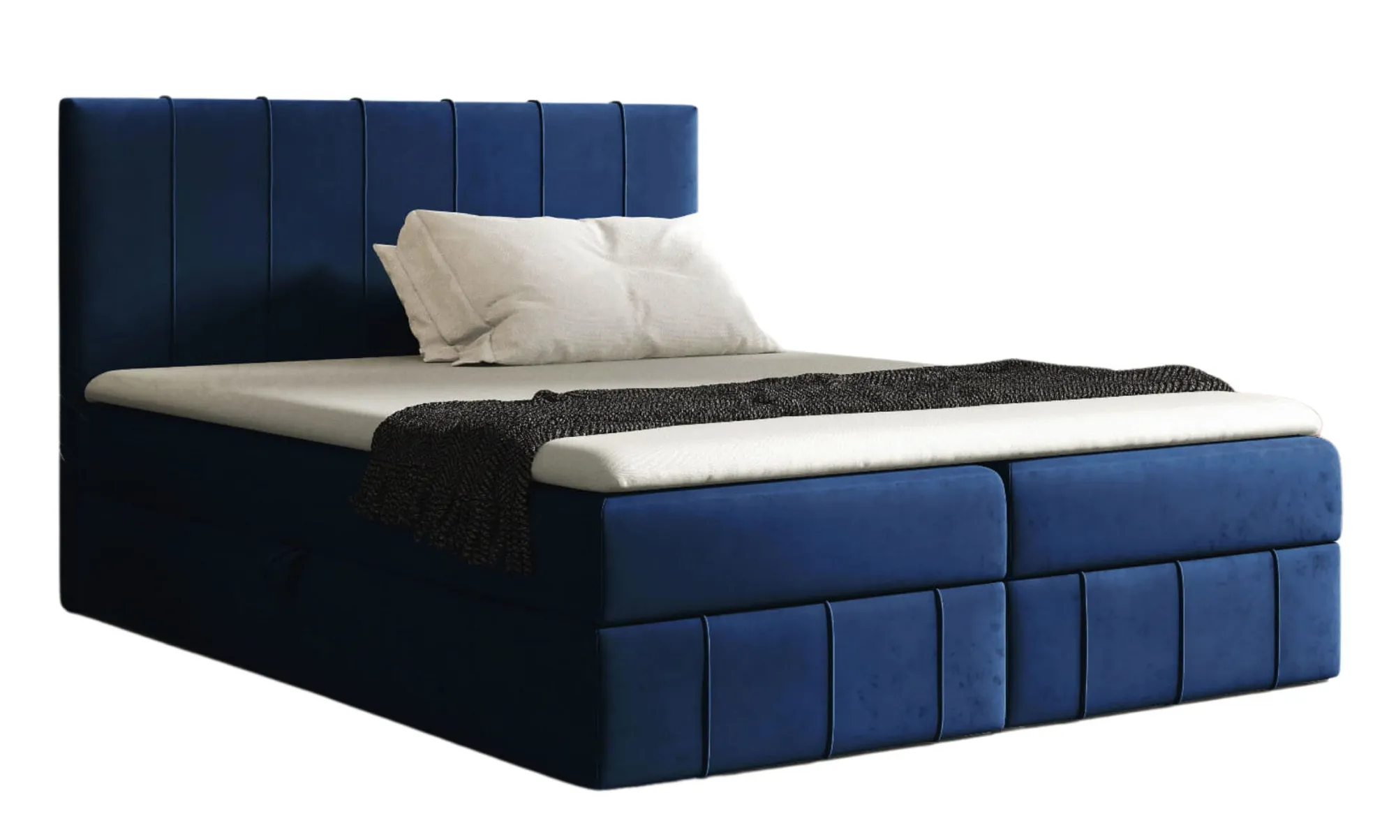Granatowe łóżko kontynentalne z pojemnikiem 5 rozmiarów - Elarivo