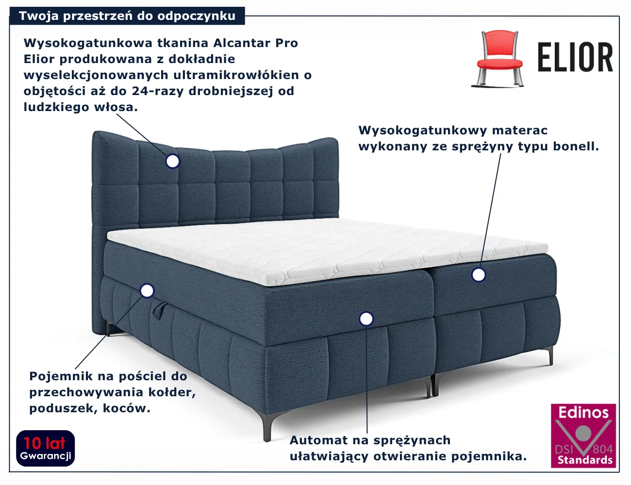 Dotyczy: Czarne kontynentalne łóżko pikowane 5 rozmiarów - Verrado