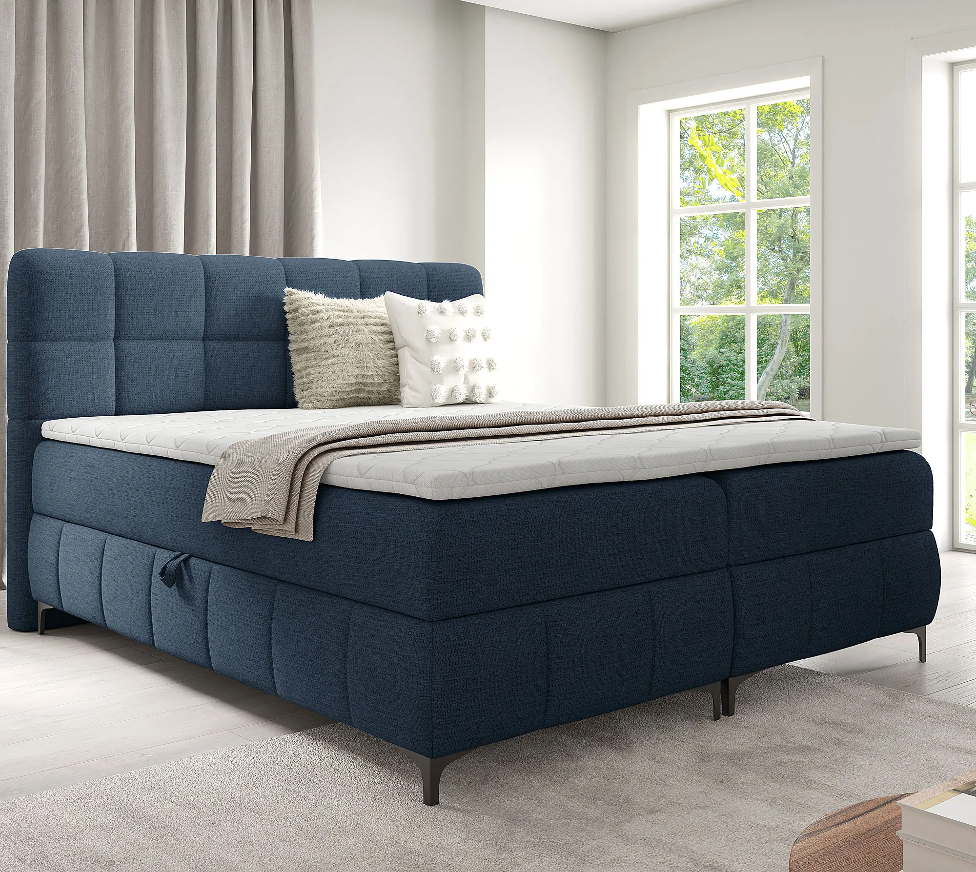 Granatowe łóżko tapicerowane 5 rozmiarów - Ravesso