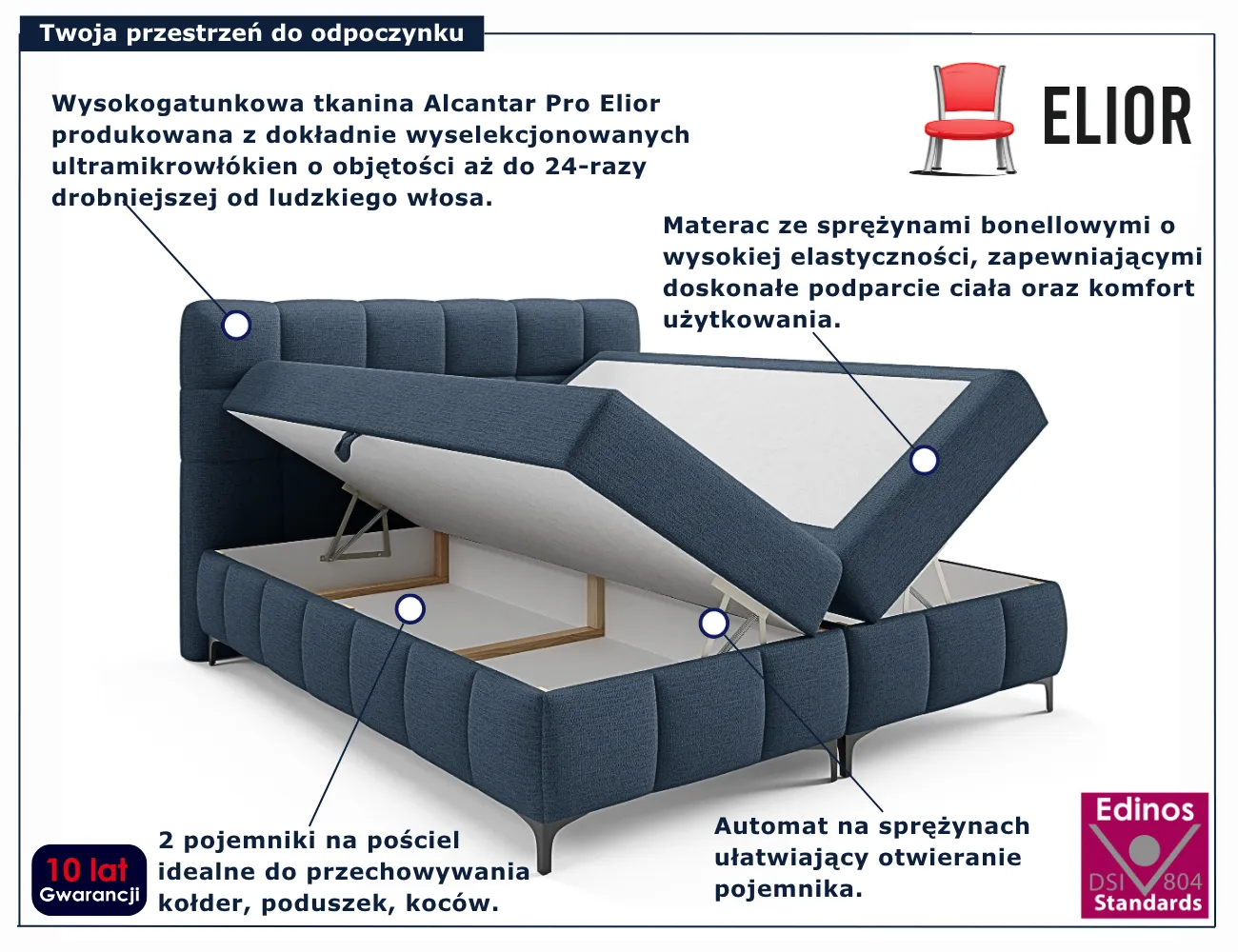 Granatowe tapicerowane łóżko kontynentalne Ravesso