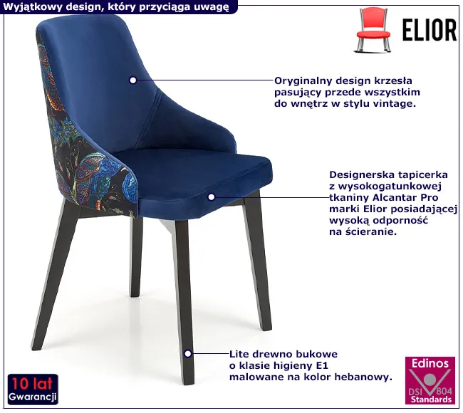 • Wyjątkowy design - krzesło Elior zachwyci każdego miłośnika wyjątkowych mebli.