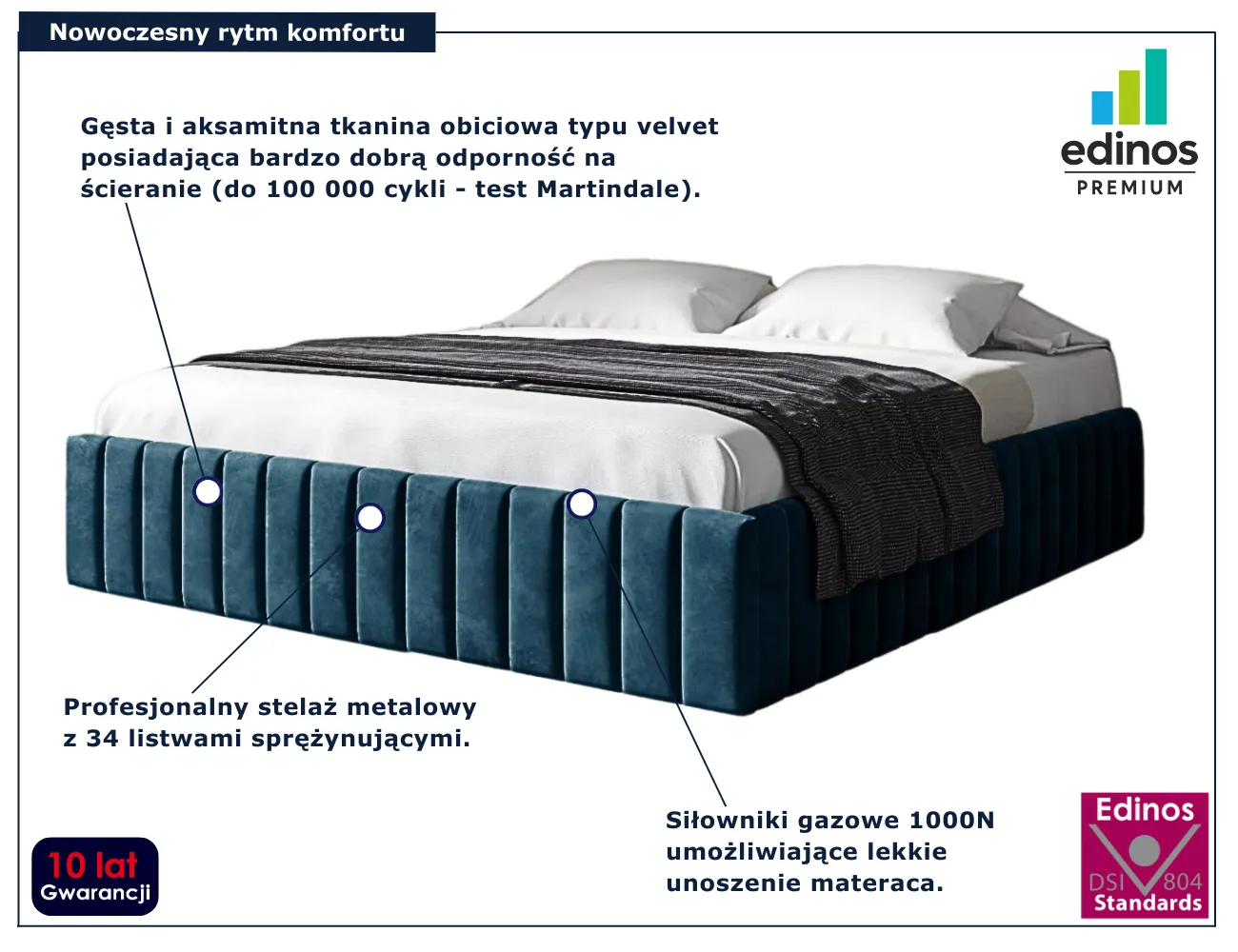 Dotyczy: Szare nowoczesne łóżko tapicerowane 5 rozmiarów - Tivrro