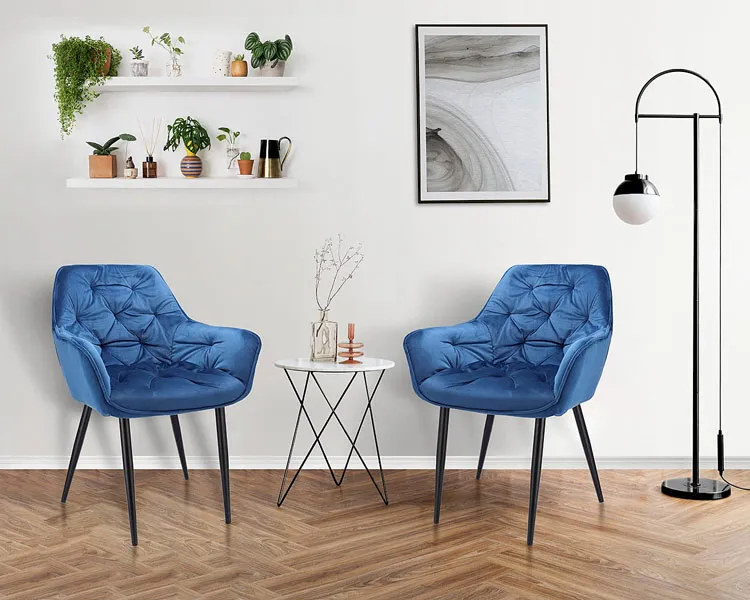 Granatowe welurowe krzesło fotelowe - Odine