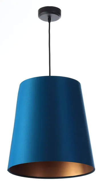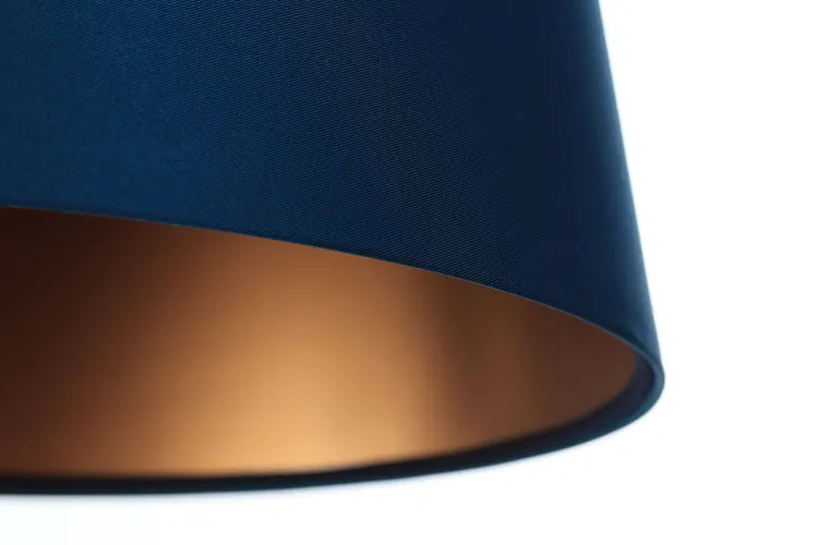 Kolor: abażur - granatowy, wnętrze abażura - miedziany, przewód - czarny, podsufitka - czarny