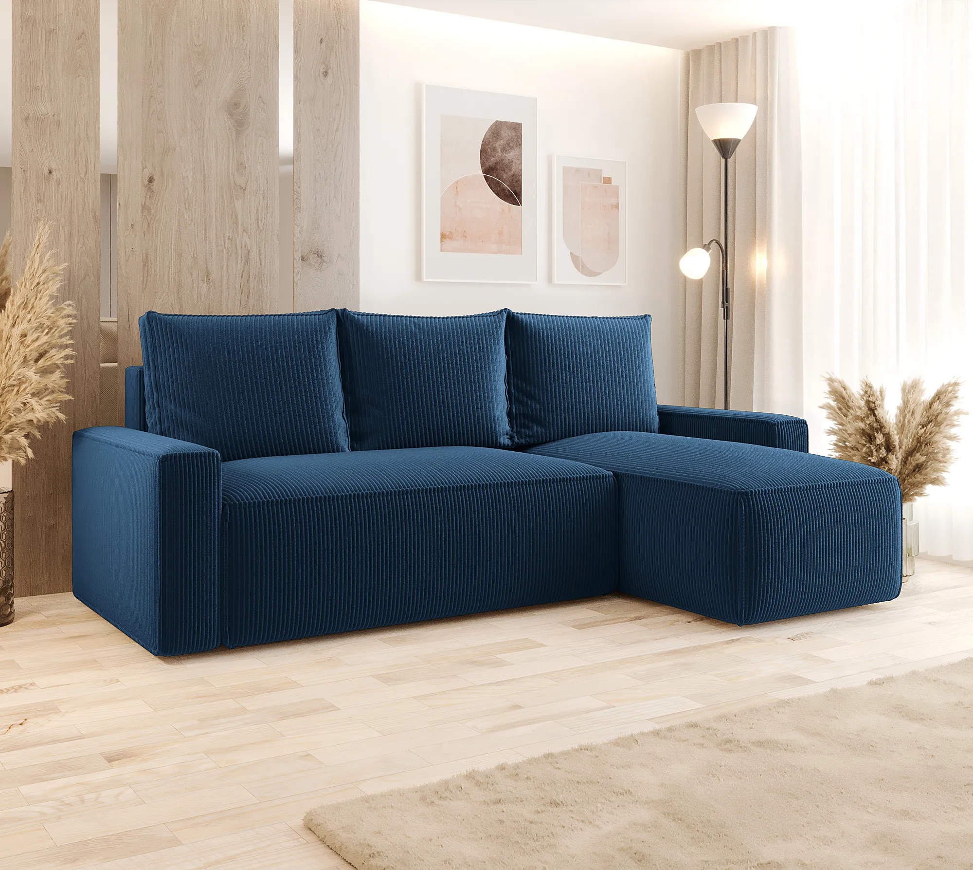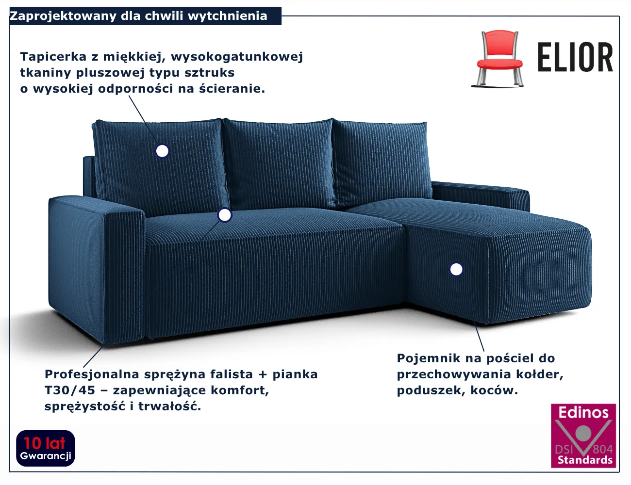 • Wysokogatunkowa tapicerka sztruksowa - niezwykle miękka i przyjemna w dotyku, dodająca wnętrzu przytulności.