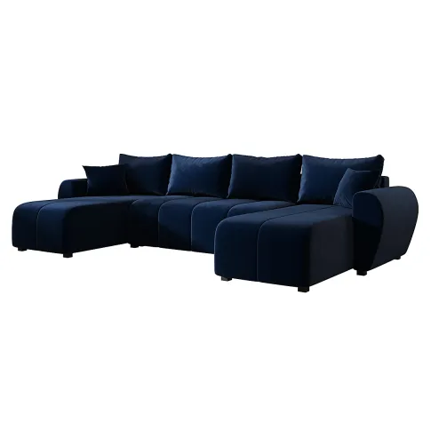 Granatowy rozkładany narożnik welurowy w kształcie U - Aurelix 4X