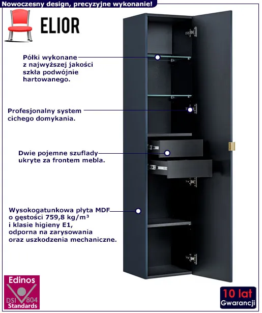 • Kolor: Granatowy. Sprawdź także inne słupki łazienkowe w sklepie Edinos.pl. Stwórz swój praktyczny zestaw mebli.
