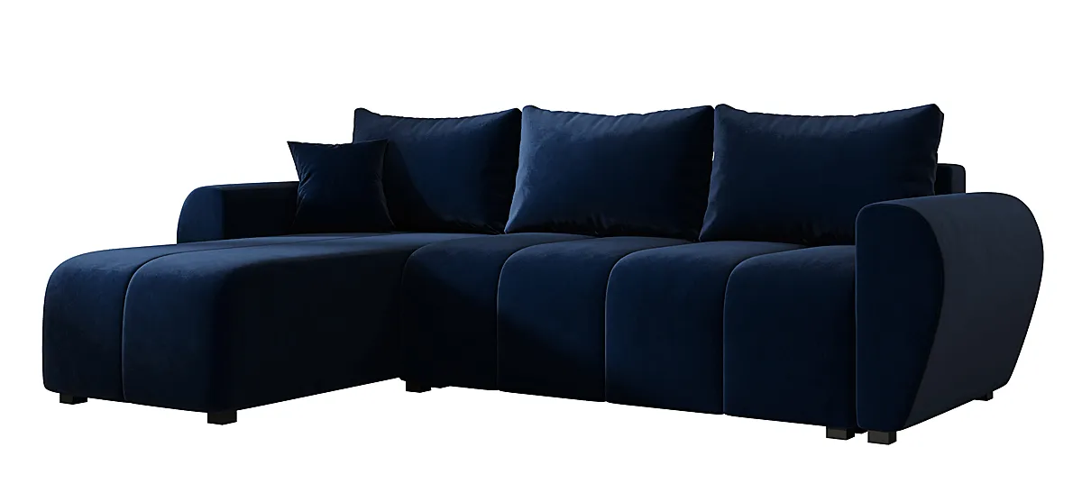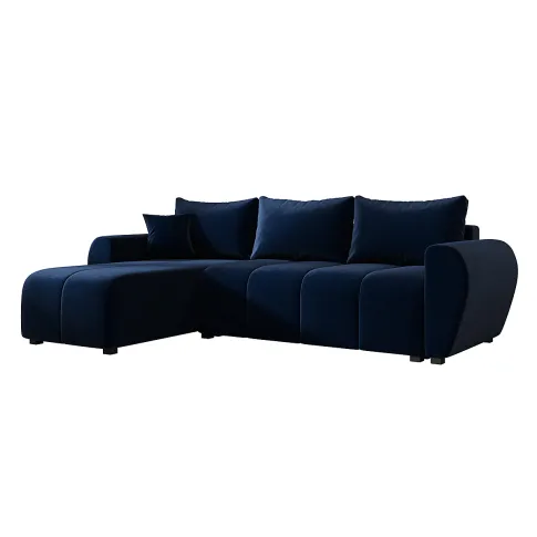 Granatowy welurowy narożnik L z pojemnikiem - Velmores 4X