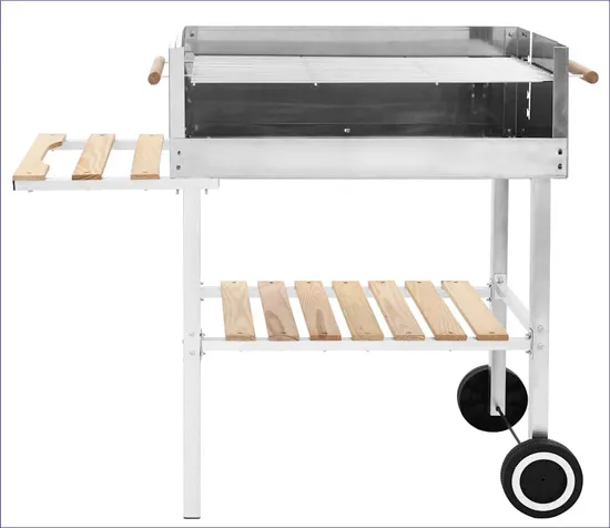 Grill węglowy srebrny na wózku z 2 półkami - Baso