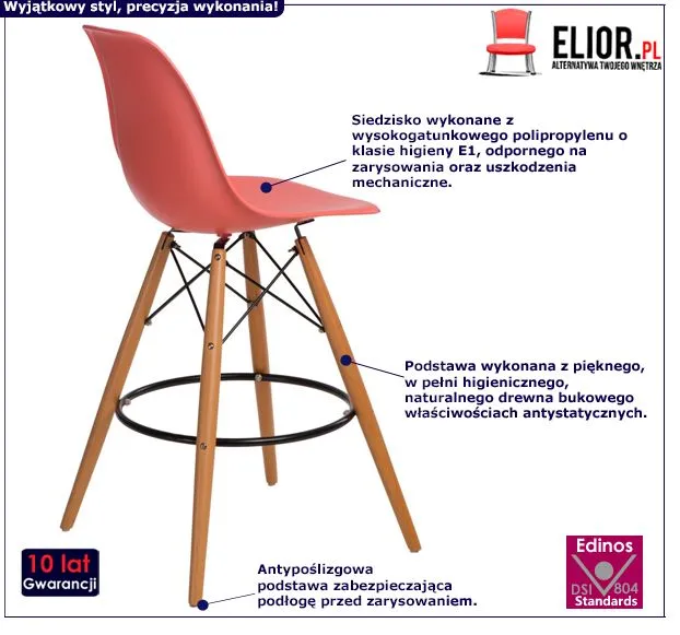 Designersko zaprojektowany hoker Bamli jest meblem cechującym się ciekawą, nowoczesną formą. Jest to zasługa między innymi starannie dobranych i niezwykle trwałych materiałów meblarskich. Dzięki nim hoker użytkuje się naprawdę wygodnie, przyjemnie i co istotne – bez uszkodzeń przez wiele lat. Do produkcji hokera wykorzystano poddane specjalistycznej obróbce, nowoczesne surowce. Podstawa hokera to wysokogatunkowy polipropylen malowany proszkowo metodą elektrostatyczną o klasie higieny E1, który jest odporny na zarysowania i uszkodzenia mechaniczne. Siedzisko mebla to naturalne, w pełni higieniczne drewno sosnowe o właściwościach antystatycznych. Jakże to istotne, by meble, w które inwestujemy cechowało staranne, porządne wykonanie. Na szczęście z wyjątkowym hokerem Bamli nie trzeba się o to martwić! Ten pełen modernistycznego, a przy tym interesującego charakteru mebel wciąż cieszy oko niebywałym wdziękiem. Bamli posiada bezsprzecznie wiele zalet – trwałość, stabilność, dokładne wykonanie, funkcjonalizm i oczywiście świeżą, pełną klasy i pomysłowości prezencję. Chyba każdy przyzna, że warto mieć tak ekstrawagancki i funkcjonalny mebel w swoich starannie i przemyślanie zaaranżowanych i wypielęgnowanych stylowo przestrzeniach.