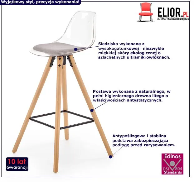 - Modna kolorystyka: transparentny, szary, naturalne drewno. Kliknij w link i sprawdź także inne hokery skandynawskie w sklepie Edinos.pl. Stwórz swój praktyczny zestaw mebli.