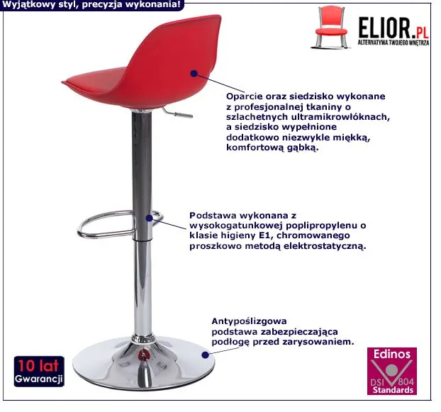 Rozglądasz się za nowoczesnym hokerem, który zapewnia wygodę i wyjątkowy styl wnętrza? Z takim, który jest stylowy, designerski i nowoczesny? To na pewno czerwono - srebrny hoker Jomi z najnowszej kolekcji marki Elior!