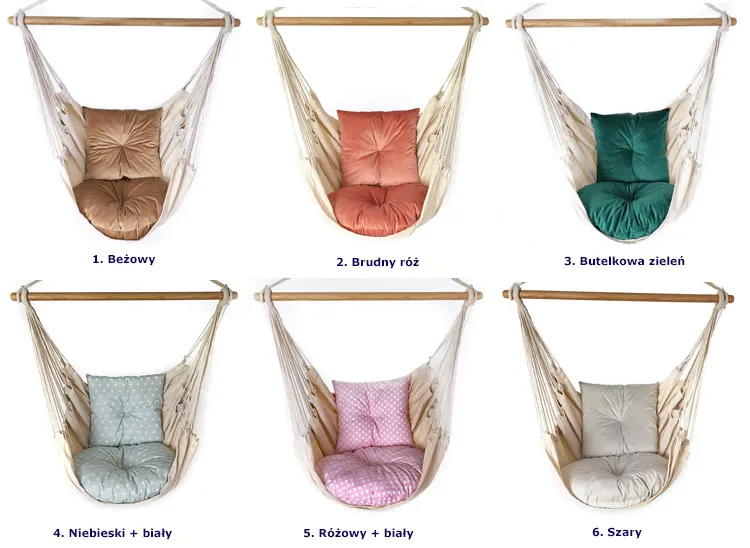 Poniżej przedstawiamy wszystkie kolory huśtawki Wetar marki Edinos Premium. Kliknij tutaj i wybierz tę, która najbardziej pasuje do wnętrza Twojego domu!