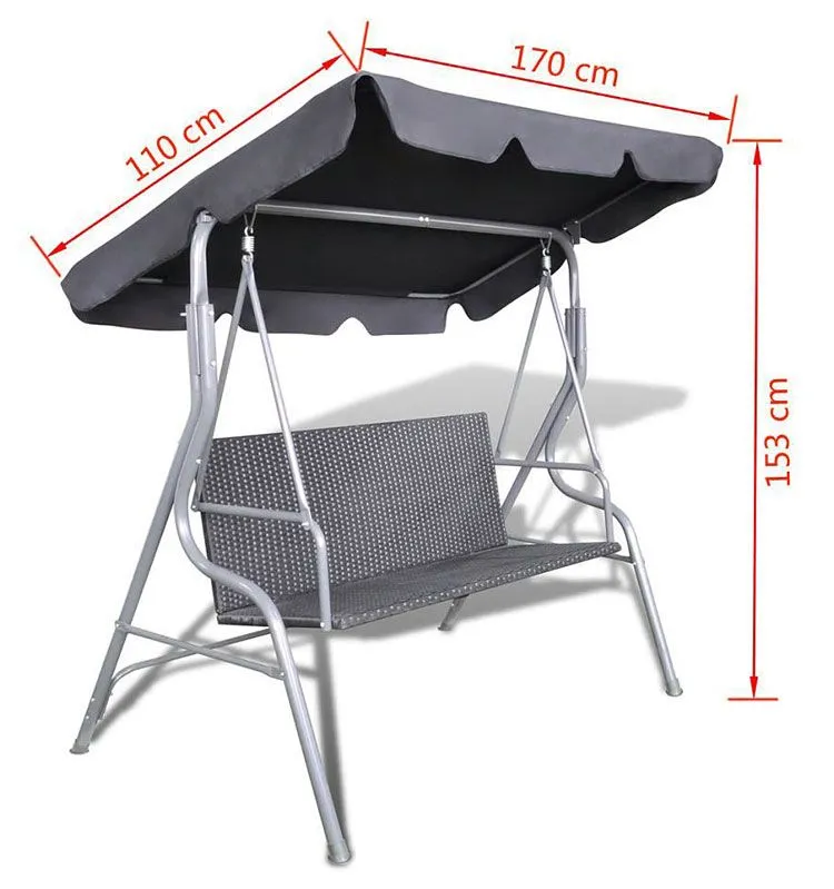 - Wymiary huśtawki: szerokosć – 110 cm, wysokość - 153 cm, długość - 170 cm.