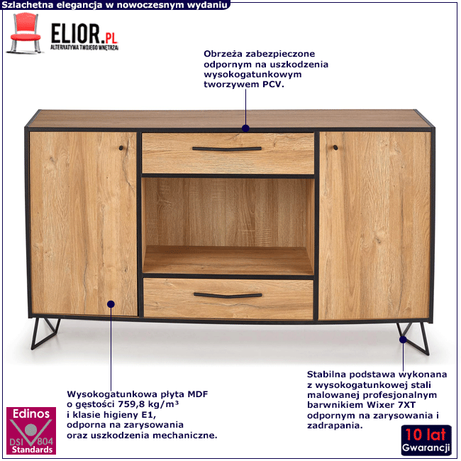- Kolor: Dąb grandson + czarny. Kliknij w link i sprawdź także inne komody industrialne w sklepie Edinos.pl. Stwórz swój praktyczny zestaw mebli.