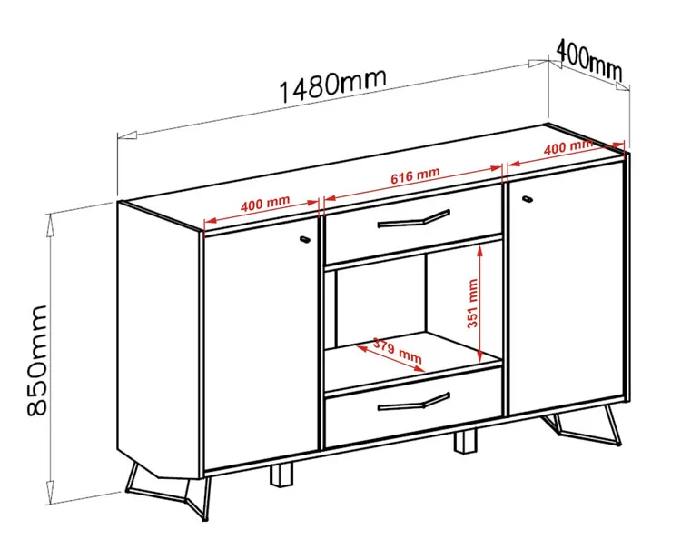 - Wymiary całkowite: wysokość - 85 cm, głębokość - 40 cm, długość - 148 cm.