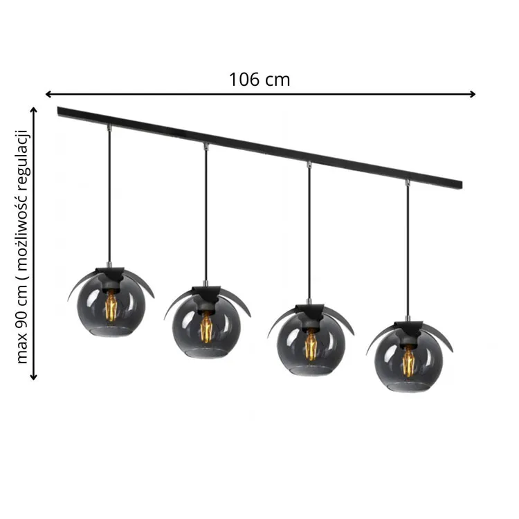 Czarna poczwórna lampa wisząca ze szklanymi kloszami A301-Andros