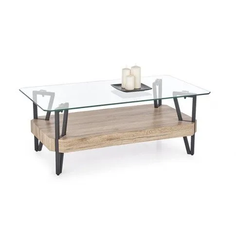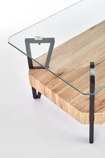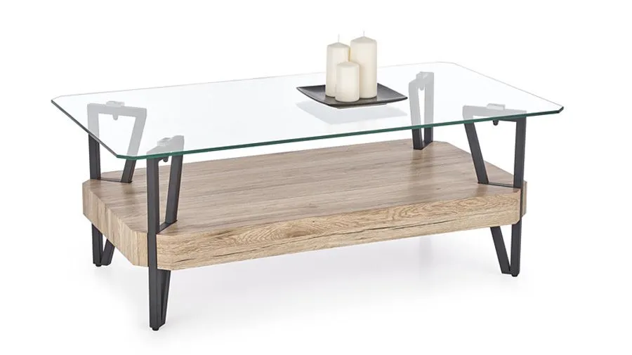 Zachwyć swoich bliskich niecodzienną ekstrawagancją! Ława Adorva dzięki zestawieniu transparentnego szkła, pięknego koloru dąb san remo oraz eleganckiej czerni, prezentuje się wprost bestsellerowo. Designerska ława promieniuje dystyngowanym charakterem, ale i nowoczesną swobodą. Projektant mebla uzyskał piękną harmonię pomiędzy zawsze aktualną w branży meblarskiej klasyką, a industrialną nieoczywistością i stylową awanagardą.