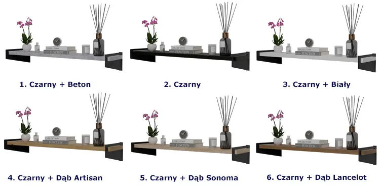 Minimalistyczna półka ścienna Netfox 4X czarny+dąb artisan