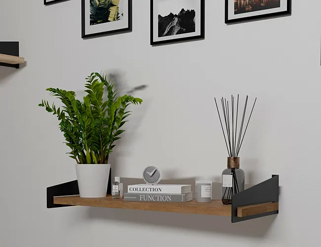 Dotyczy: Ścienna półka na książki w stylu loft czarny + dąb artisan - Mizu 4X